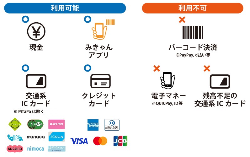 ※交通系ICカードはICOCA、SUICA、PASMO等がご利用いただけます。