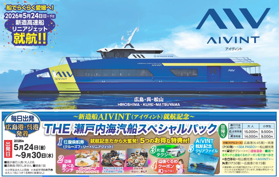 ●乗船便により瀬戸内海汽船フェリーSEA PASEO/リニアジェットAIVINTまたは石崎汽船便となります。