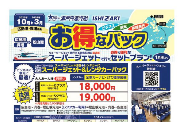 スーパージェット、フェリーで行く四国を巡る漫遊の旅。ビジネスや名所景勝探訪。便利なプランから心に残る体験旅行まで、どうぞ四国の旅をご満喫ください。