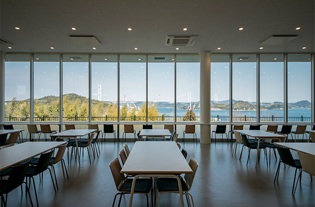 - 2階の展望テラスは、来島海峡と世界初の3連吊橋である来島海峡大橋、また、美しい瀬戸内海に浮かぶ大小の島々を眺めることができる絶景スポットです。